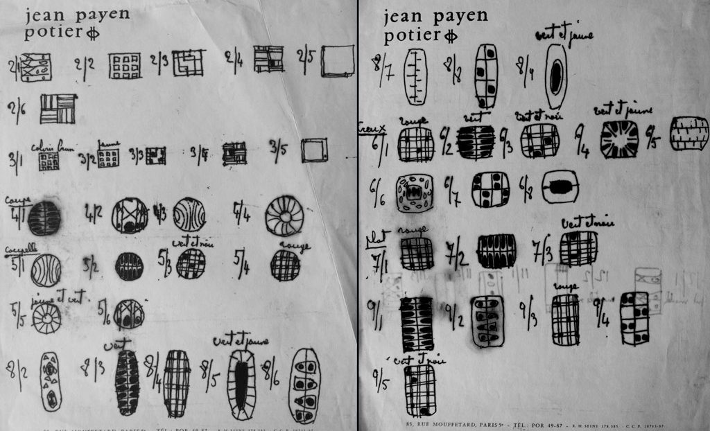 Le décor est au cœur du renouveau de la céramique initié à Vallauris quand Jean Payen se lance dans le métier au début des années 50. Il l’adopte à son tour et conçoit des motifs abstraits géométriques ou animaliers stylisés. Par la suite, alors que les décors passent de mode, les siens se font plus rares et s’épurent encore. En un sens, réaliser des décors uniques sur des pièces de série lui permet de dépasser le dilemme brûlant de la céramique du début des années 60 partagée entre la série et la pièce unique. Si ses deux grandes périodes se distinguent aisément, cette évolution se fait dans la continuité, sans ruptures radicales. Ses dernières compositions, à la stricte géométrie élémentaire ou aux courbes fluides et naturelles, trouvent leur origine dans ses oeuvres initiales pourtant marquées par le “style 50”.
