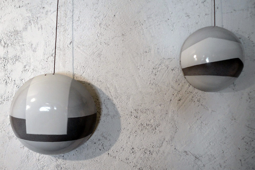 Deux coupes hémisphèriques dans la salle d'exposition de Gordes, c. 1980.